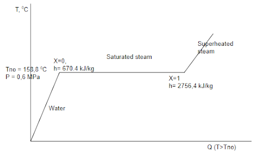 The beginning of phase change of water to steam (boiling) for each pressure occurs at strictly a certain temperature. For example, for pressure of 0,1 MPas (1 atm.) steaming temperature Тпо = 100 0С, for pressure of 0,6 MPas (6 atm.) Тпо = 158,8 0С