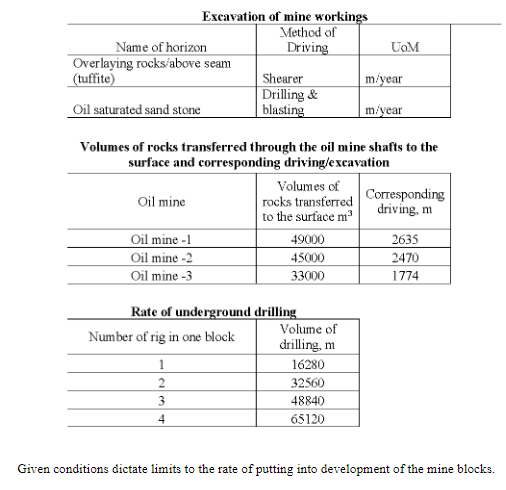 Mining and Underground Well Drilling Rates Achieved at Yarega